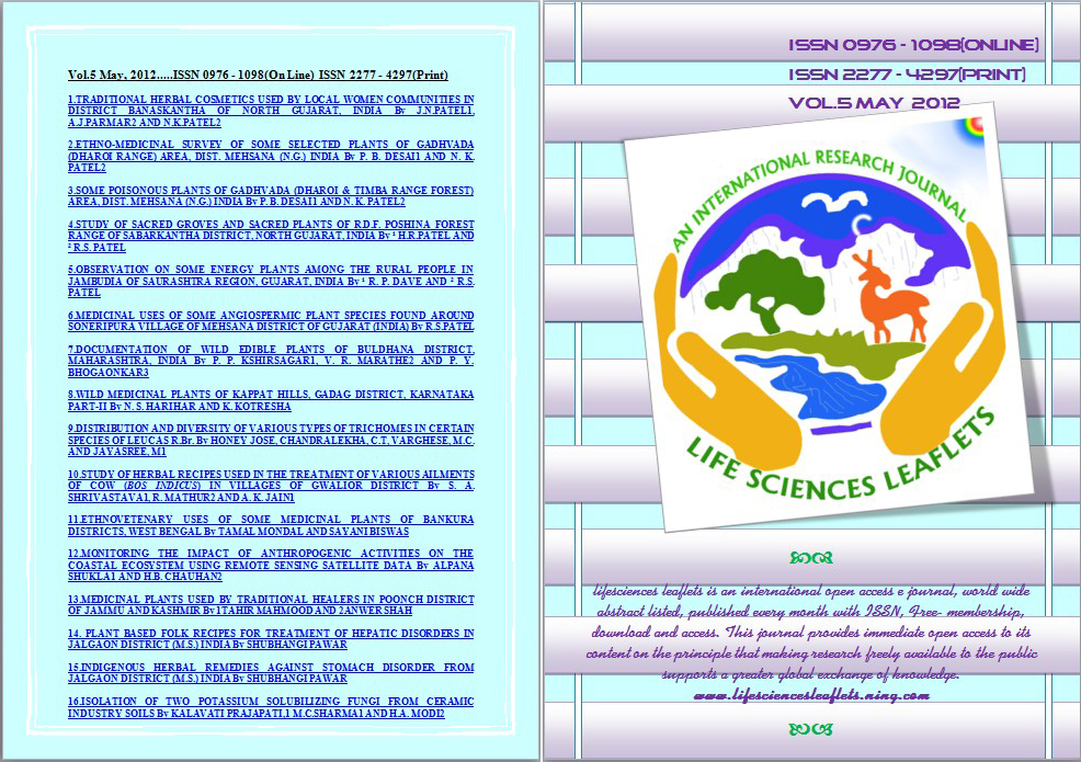 Vol. 27 (2012): MAY, 2012.....ISSN 0976 - 1098(ON LINE) ISSN 2277 - 4297(PRINT)