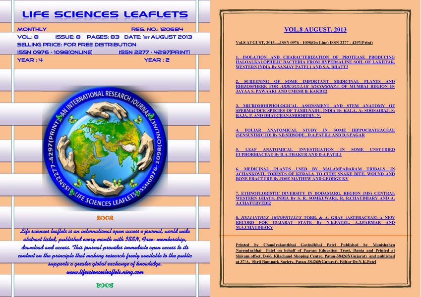 Vol. 42 (2013): AUGUST, 2013.....ISSN 0976 - 1098(On Line) ISSN 2277 - 4297(Print)