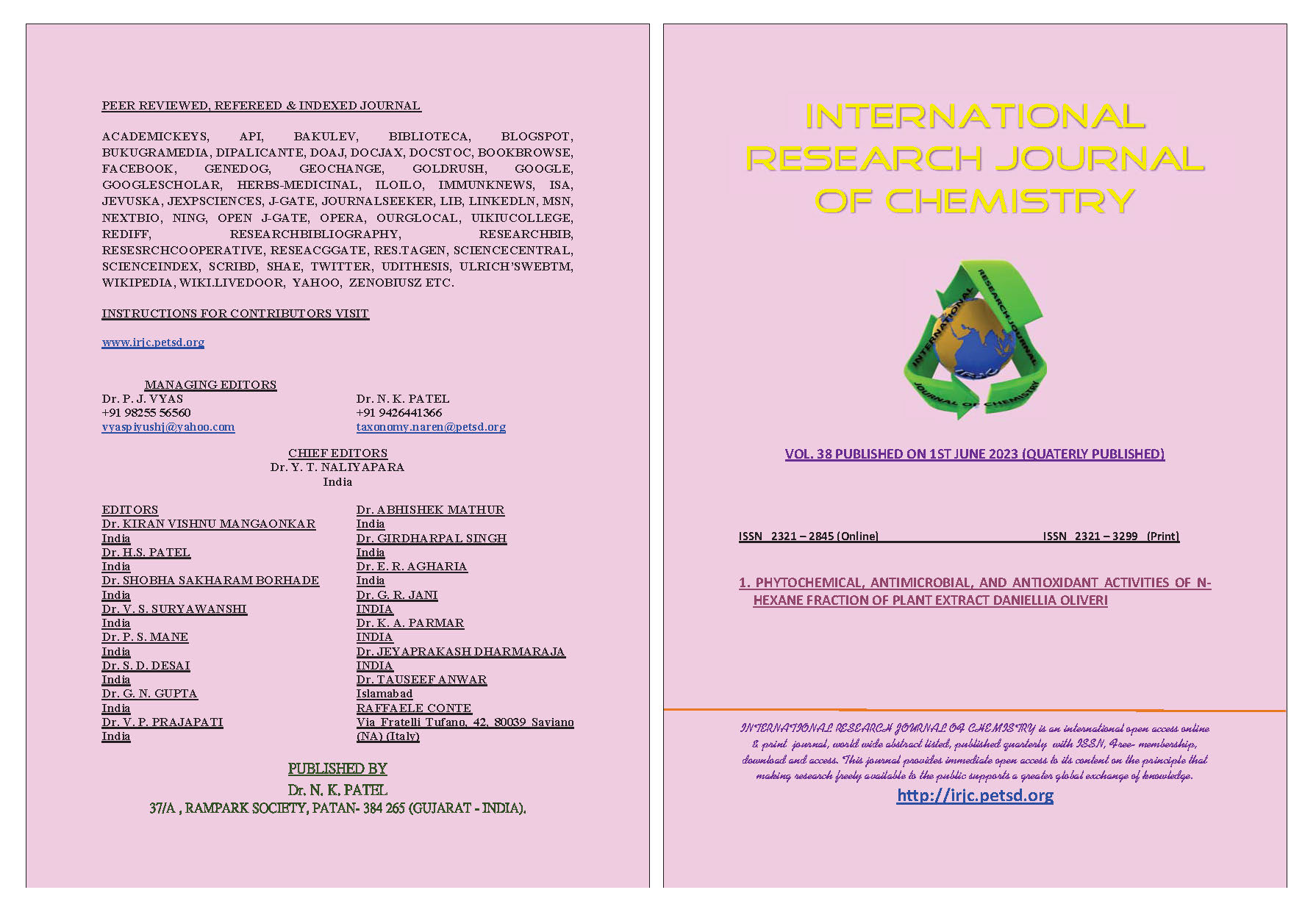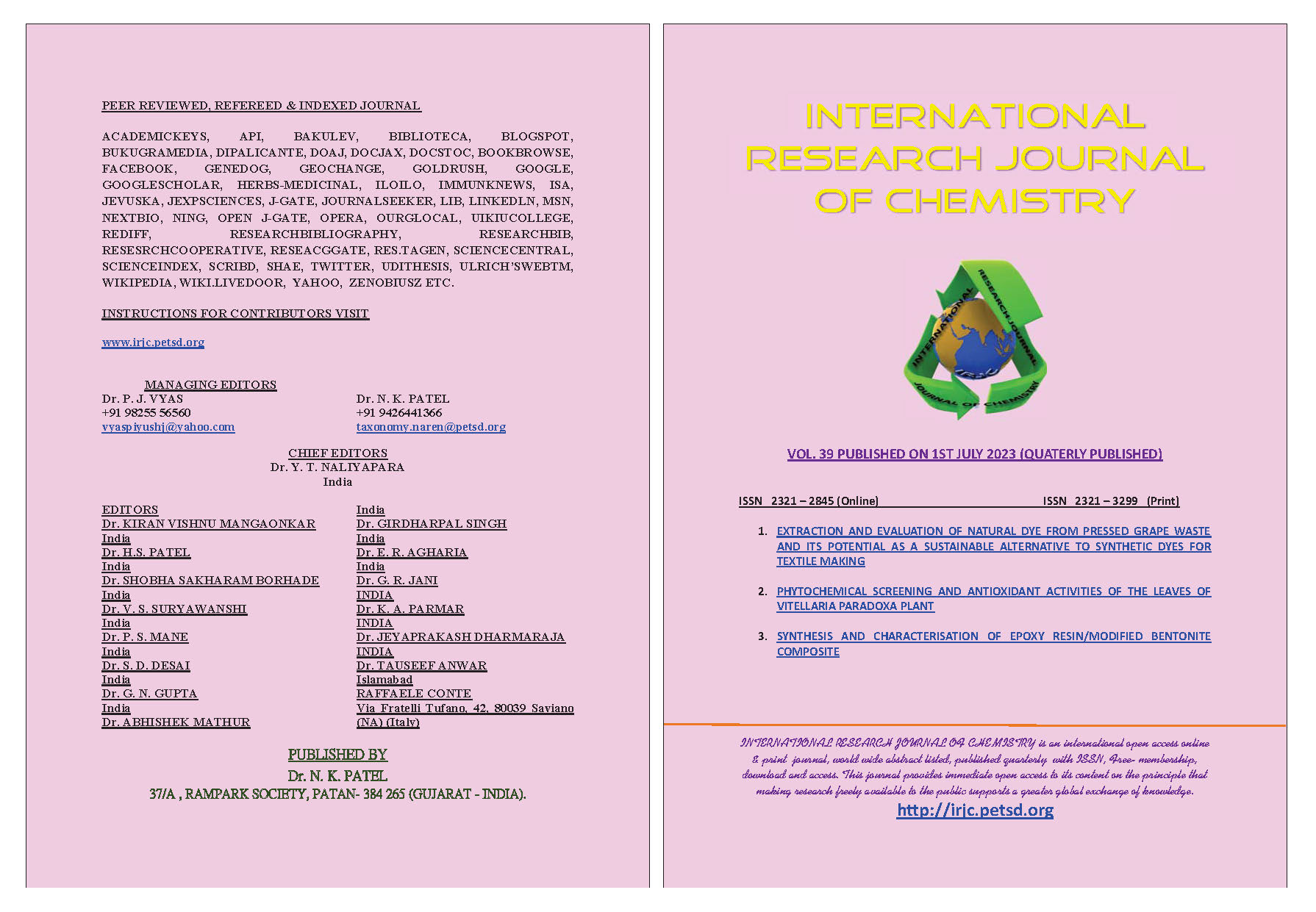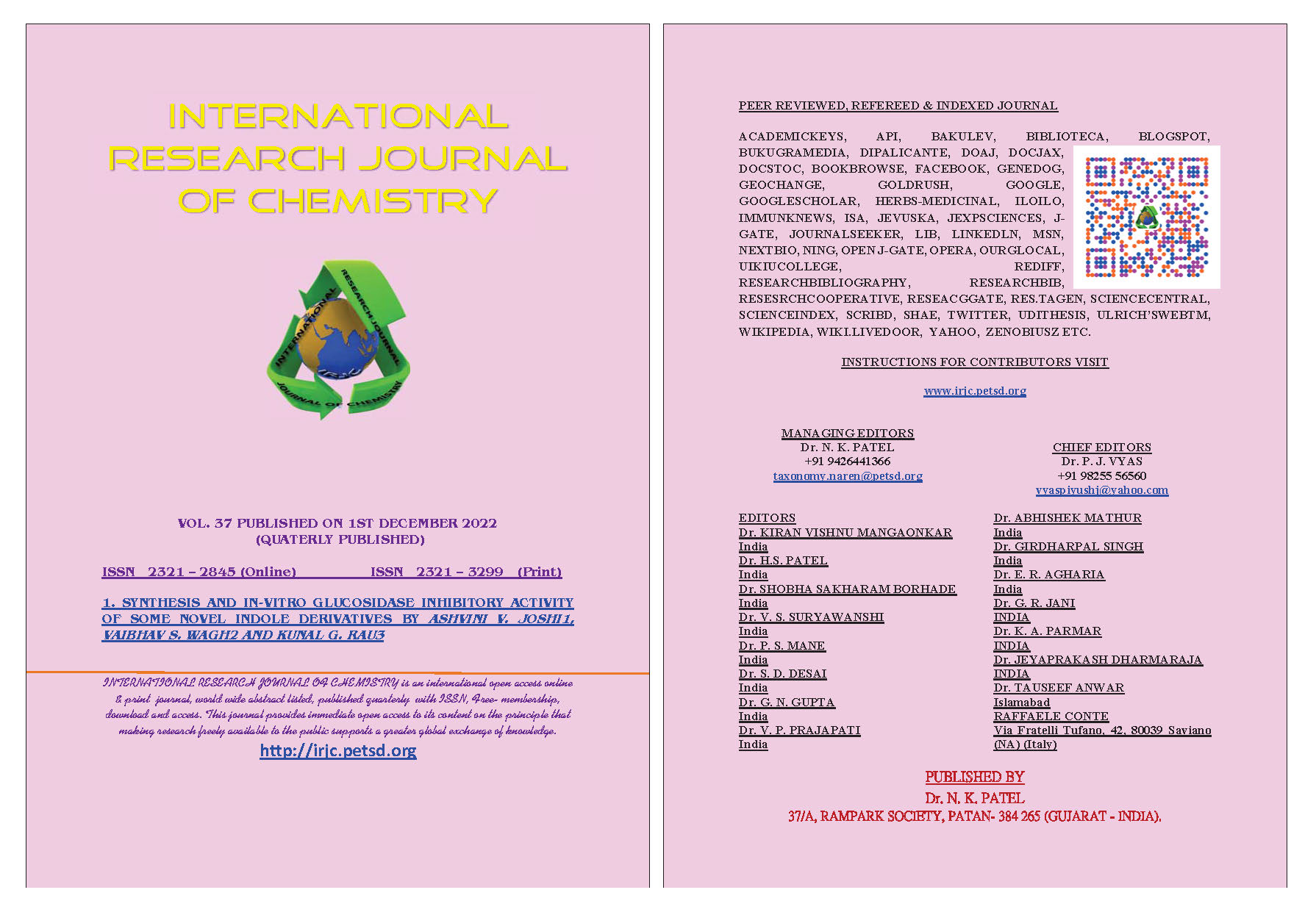 CHIEF EDITORS Prin. Dr. P. J. VYAS +91 98255 56560 Dr. Rita K. Rai EDITORS From India Dr. H.S. PATEL Dr. RAMESWAR AMETA Dr. M. V. HATHI Dr. KIRAN VISHNU MANGAONKAR Dr. SHOBHA SAKHARAM BORHADE Dr. GAURANG JANI Dr. V. S. SURYAWANSHI Dr. P. S. MANE Dr. G. N. GUPTA Dr. ABHISHEK MATHUR Dr. Girdhar Pal Singh Dr. E. R. AGHARIA Dr. G. N. BAXI Dr. Y. T. NALIYAPARA Dr. A. K. RANA Dr. D. R. PATEL Dr. SANJAY PATEL Dr. GIRIN BAXI Dr. A. K. PRAJAPATI Dr. P. K. PATEL Dr. PANKAJ PATEL Dr. S. D. DESAI Dr. MAYANK MEHTA Other Than India Dr. TAUSEEF ANWAR Islamabad RAFFAELE CONTE Italy |